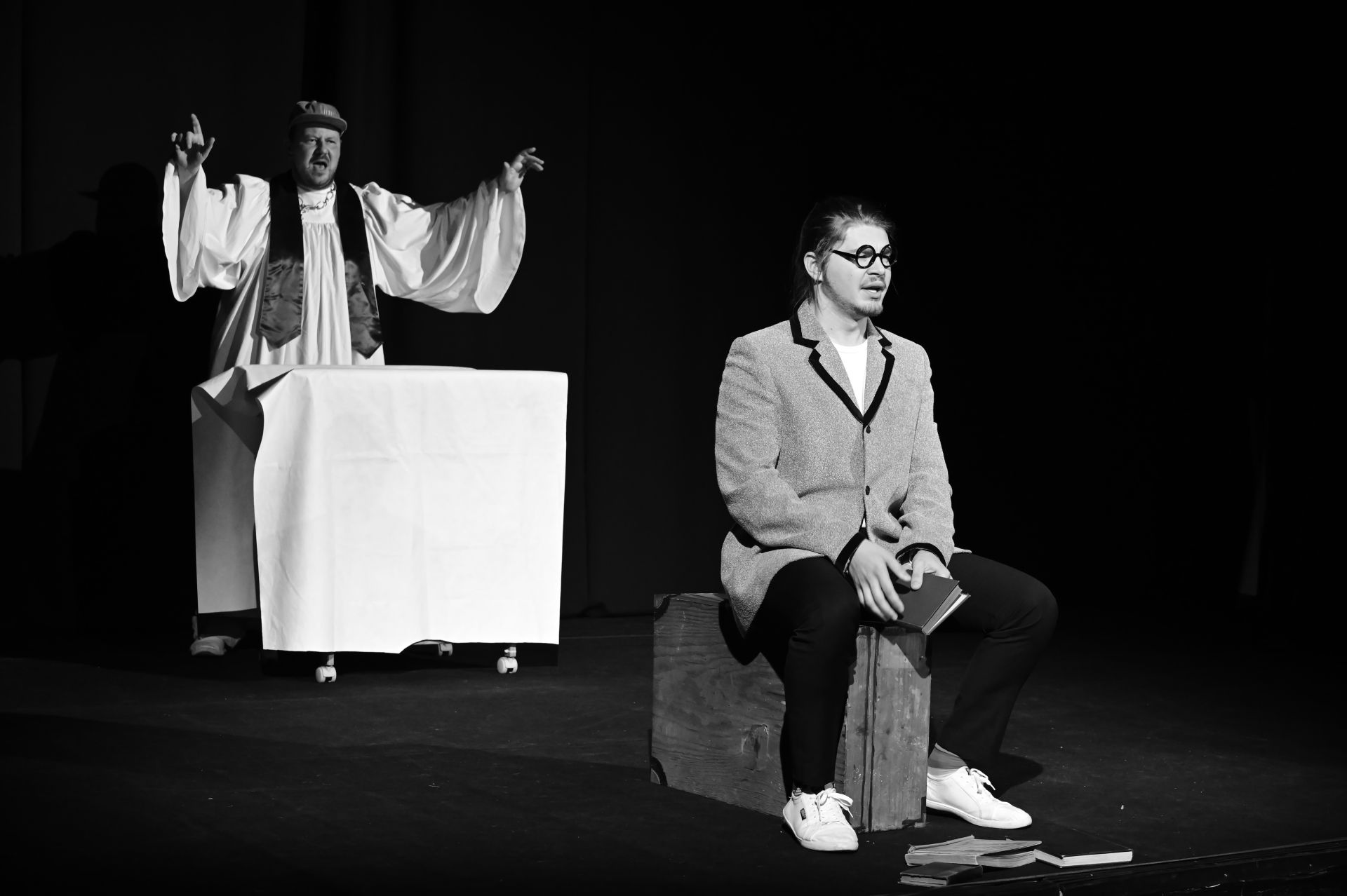 Na posledním představení jsme přivítali cca šedesát diváků. Velice nás to potěšilo, vzhledem k probíhající pandemické vlně, kdy mnoho lidí do sálu přijít nemůže nebo nechce. Měl jsem pocit, že si večer všichni užíváme, protože mnohá jiná divadla už mají zase zavřeno a představení odkládají. Každé hraní je vlastně malé dobrodružství do poslední chvíle. Lidé si z pochopitelných důvodů přestali vstupenky rezervovat předem, a tak je těžké odhadnout, kdo všechno z ulice přijde. A to bude platit i pro reprízu 5. února.