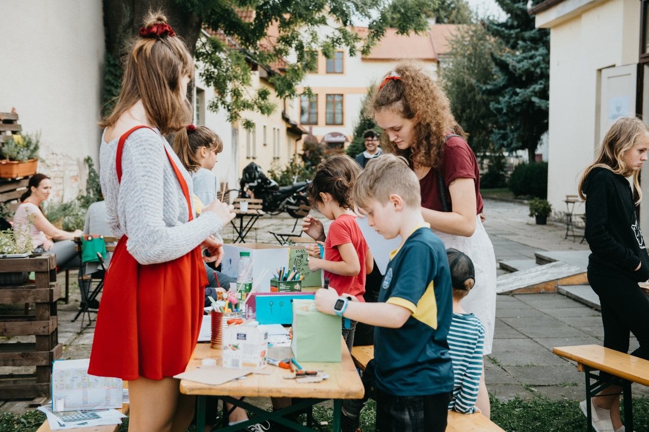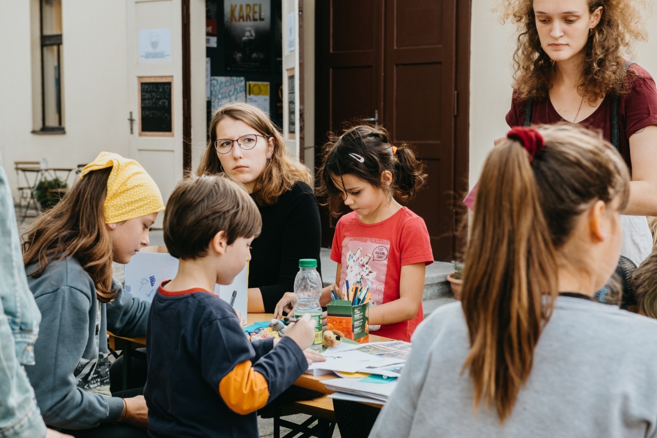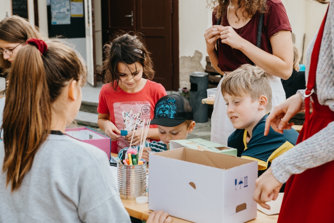 Nedílnou součástí Dne architektury v Nymburce je dětský program. Věříme totiž ve vzdělanou a kultivovanou budoucnost. Před několika lety ho zavedla architektka Radka Brožová a letos se ho ujaly studentky architektury Markéta Osifová s Hanou Václavkovou a Markétiny sestry Emma a Julie. Program nazvaly Kino v kině aneb Neseď doma v paneláku, přijď tvořit do coolturáku. Děti měly možnost proměnit papírovou krabici v budovu kina, vyzdobit ji zvoleným architektonickým stylem a upravit interiér včetně miniaturního hlediště a jeviště s plátnem. A filmem, většinou pohádkou nebo večerníčkem.