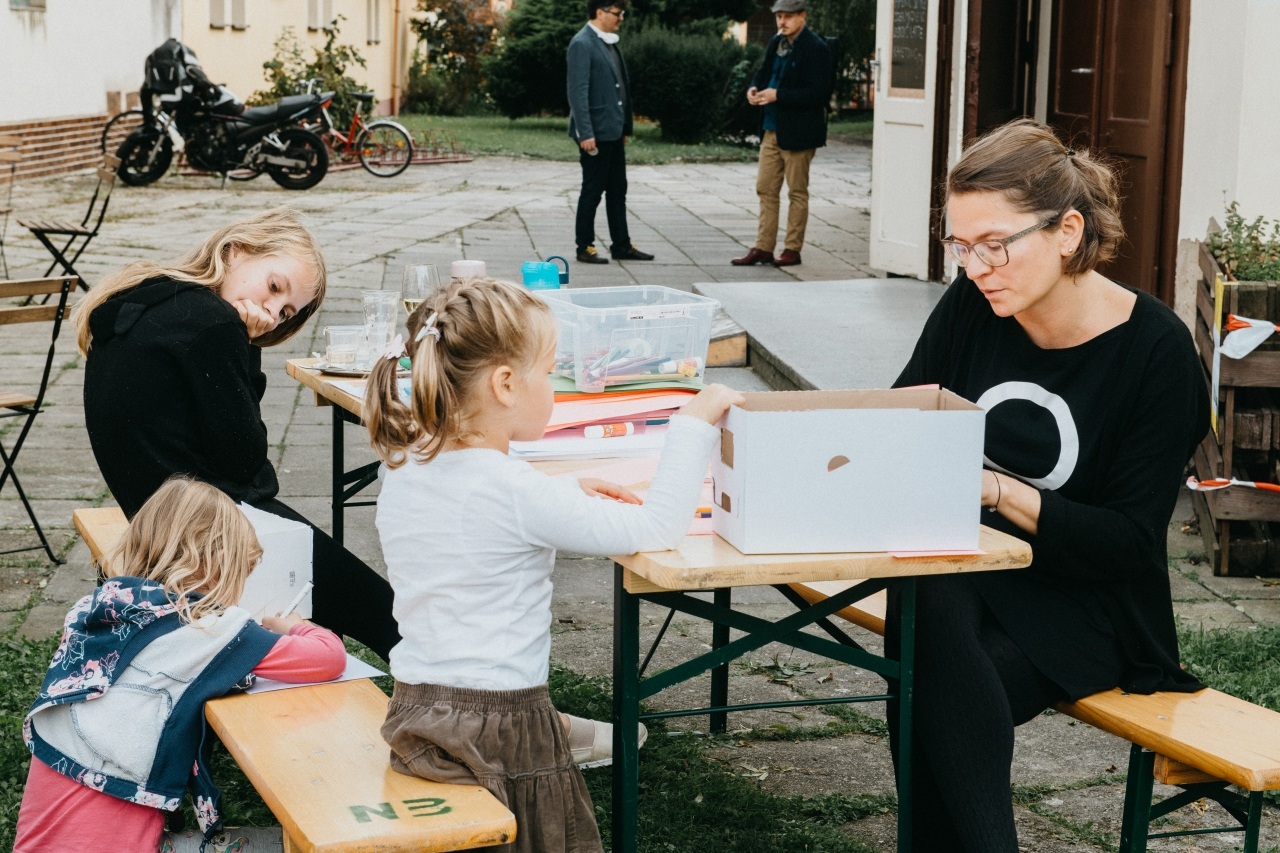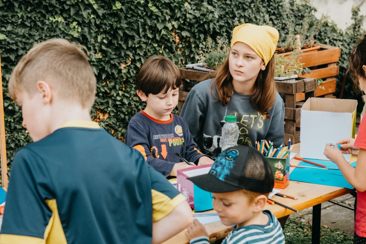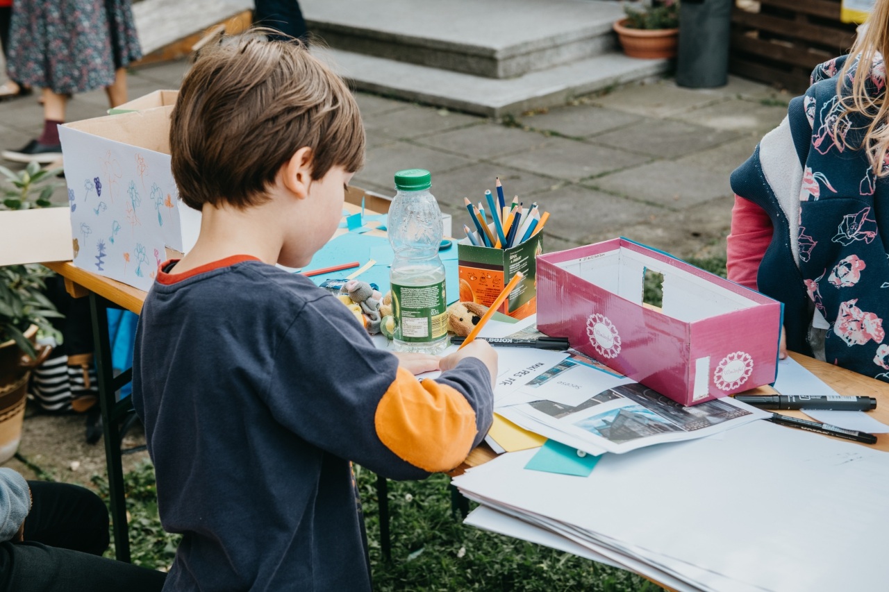Nedílnou součástí Dne architektury v Nymburce je dětský program. Věříme totiž ve vzdělanou a kultivovanou budoucnost. Před několika lety ho zavedla architektka Radka Brožová a letos se ho ujaly studentky architektury Markéta Osifová s Hanou Václavkovou a Markétiny sestry Emma a Julie. Program nazvaly Kino v kině aneb Neseď doma v paneláku, přijď tvořit do coolturáku. Děti měly možnost proměnit papírovou krabici v budovu kina, vyzdobit ji zvoleným architektonickým stylem a upravit interiér včetně miniaturního hlediště a jeviště s plátnem. A filmem, většinou pohádkou nebo večerníčkem.