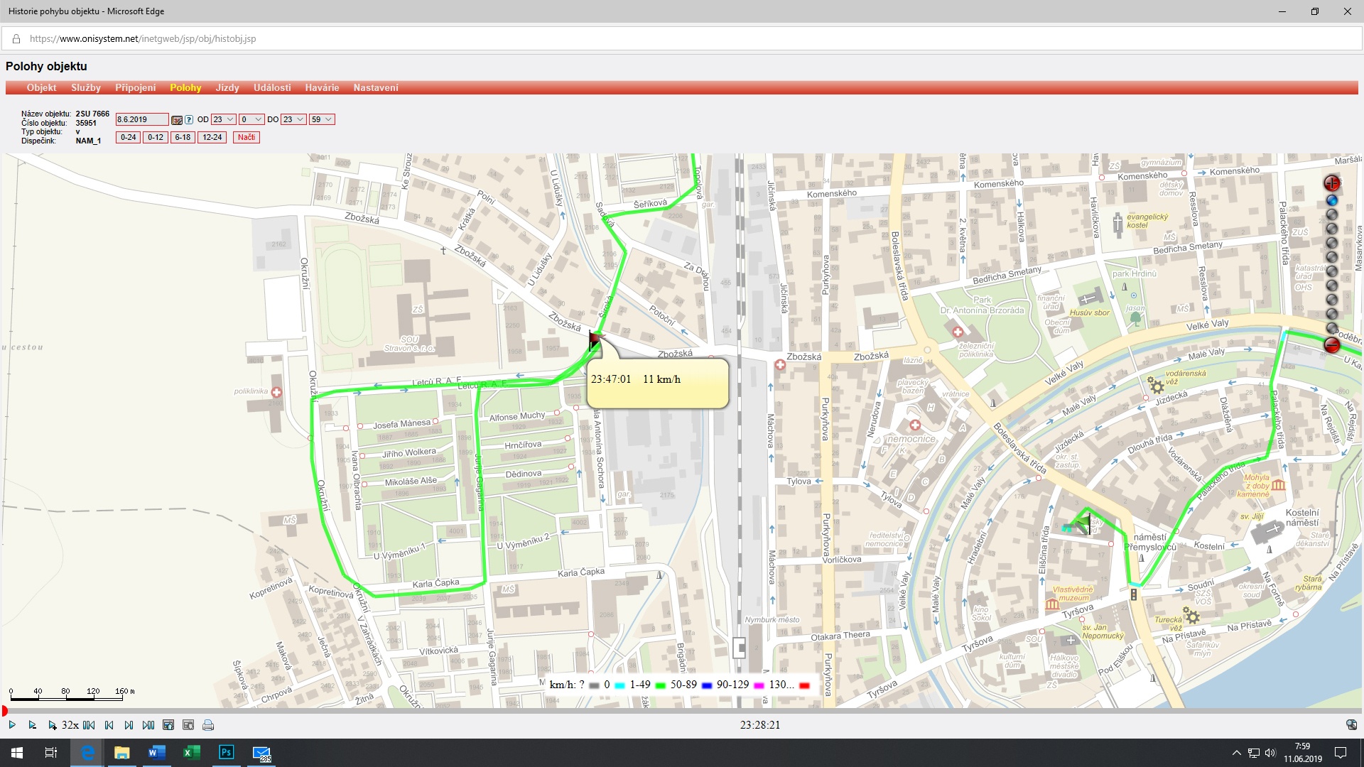 Čas průjezdu vozu MP Nymburk bez zastavení: 23:47:01