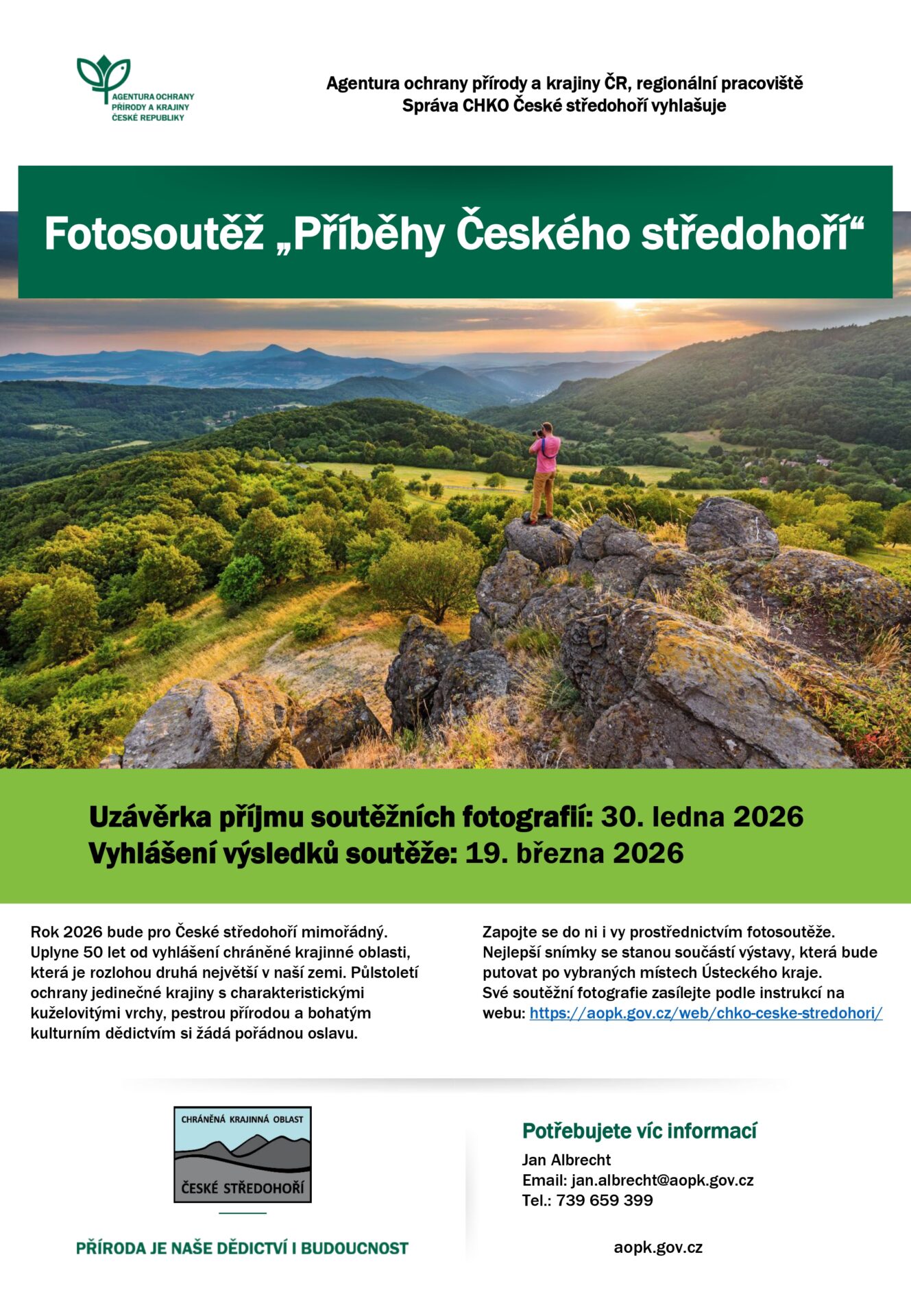 ČESKÉ STŘEDOHOŘÍ – Agentura ochrany přírody a krajiny ČR připravila pro širokou veřejnost fotosoutěž Příběhy Českého středohoří. Příští rok to bude právě 50 let od vyhlášení chráněné krajinné oblasti v tomto nádherném regionu naší republiky.