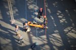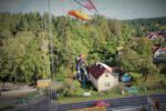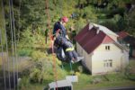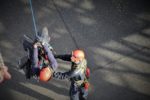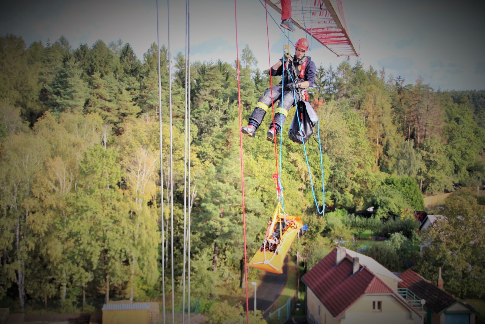 Kolínští hasiči cvičili téměř v oblacích. Na obrovském jeřábu trénovali záchranu lidí a transport na zem