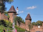 Největším tahákem Lodí na Labi pak byl přechod po laně přes řeku. O ten se postarala v sobotních odpoledních hodinách artistka a provazochodkyně Sarah Tarantini Kaiser, kterou znají především v zahraničí. Povzbuzována davem diváků pod ní, přešla 150 metrů široký tok Labe na laně ze Špičky až pod hradby. Její otec, Ladislav Kaiser, šel po laně například na katedrálu sv. Bartoloměje, vysoké 90 metrů, Kaiserovi se také v roce 1982 procházeli mezi věžemi sv. Havla. Takto přes řeku šla Sarah Kaiser prý vůbec poprvé. A i když trochu pofukovalo, zvládla to bez jakéhokoliv jistění bravůrně.
