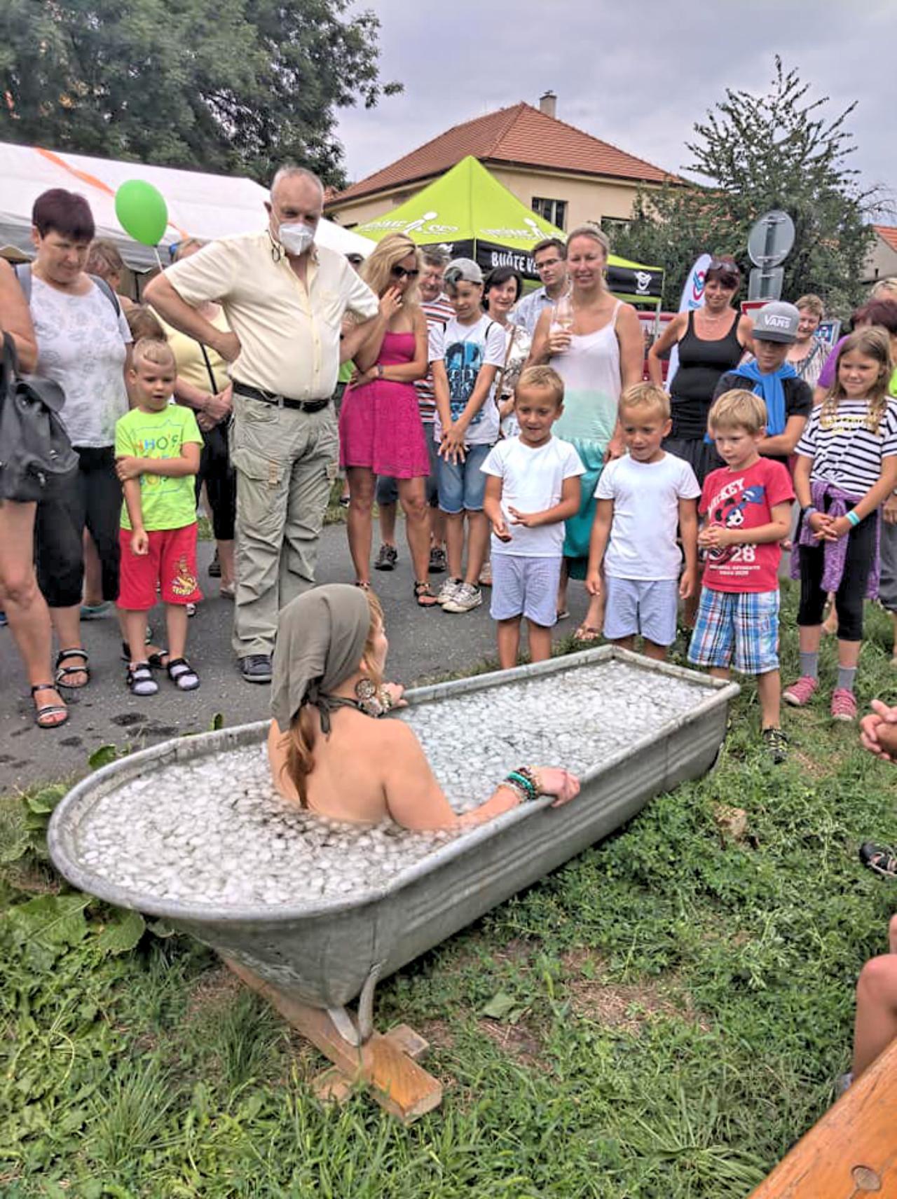 Kromě občerstvení a projížďky v lodích nabízela akce například happening Louisy Püschel, která maluje energetické obrázky a je zároveň vyznavačkou otužování. To v sobotu skloubila a v jeden moment se ponořila do staré babičkovské plechové vany plné ledu. V ní potom malovala. „Led nádherně prokrvuje a probouzí tu intenzivní energii vody. Ta byla z elfí řeky příběhů, pohádek a bohaté historie, tedy z Labe. Má pro mě ojedinělou sílu a čistou duši,“ vyznala se Püschel.
