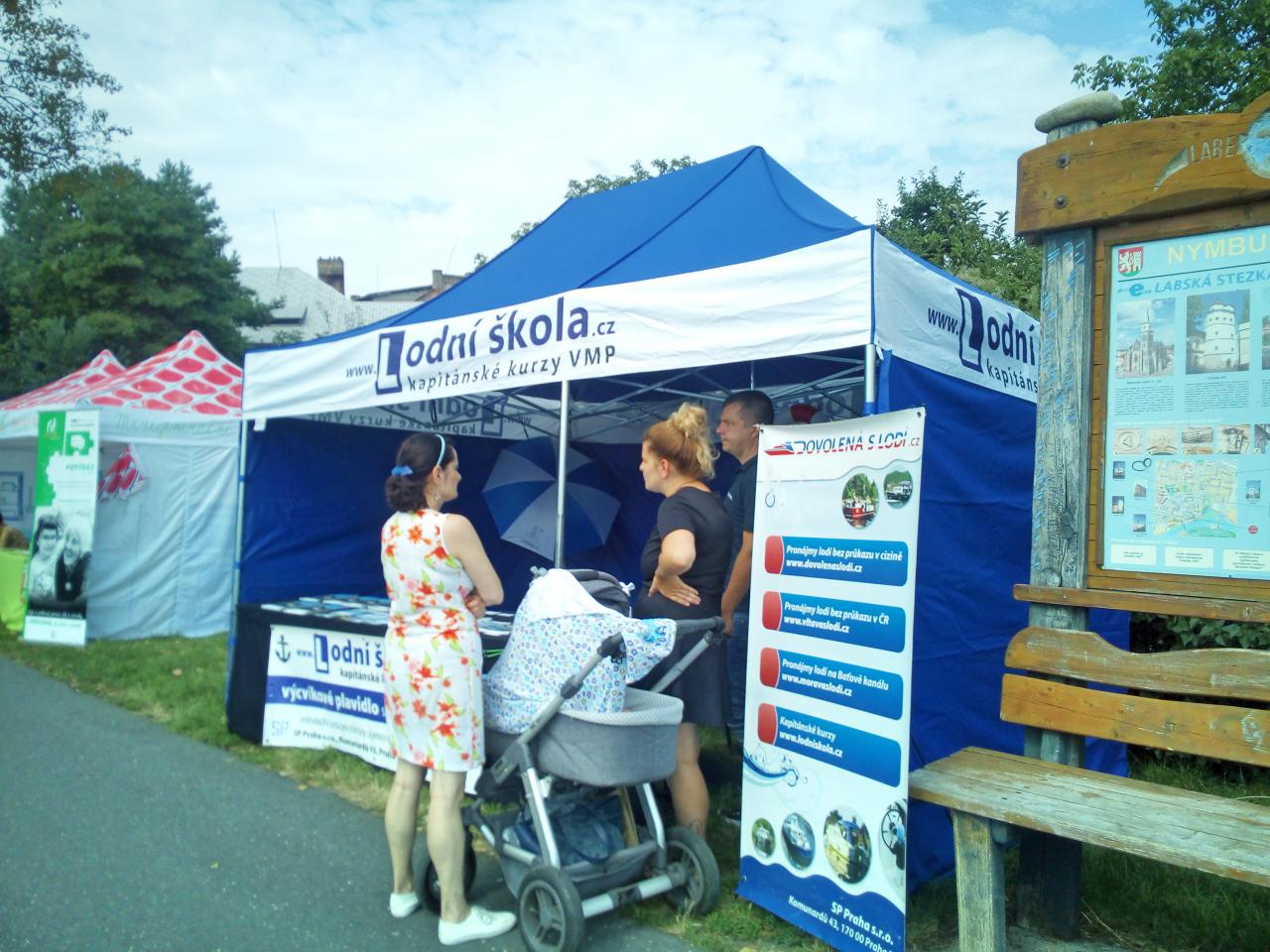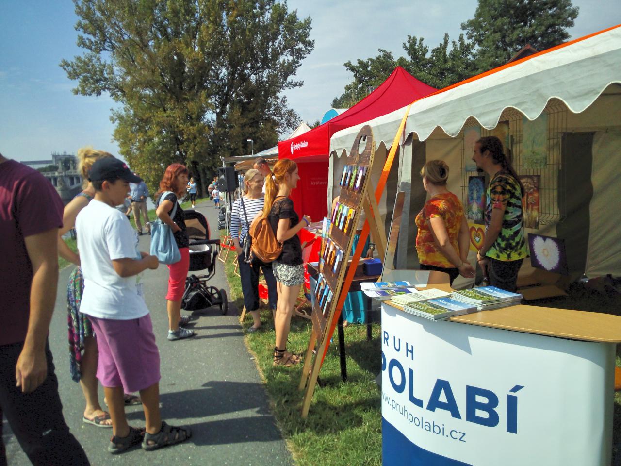 Stánky lemovaly břeh, lidé se mohli seznámit s Baťovým kanálem nebo zjistit, jak si pořídit na plavidlo kapitánské zkoušky.