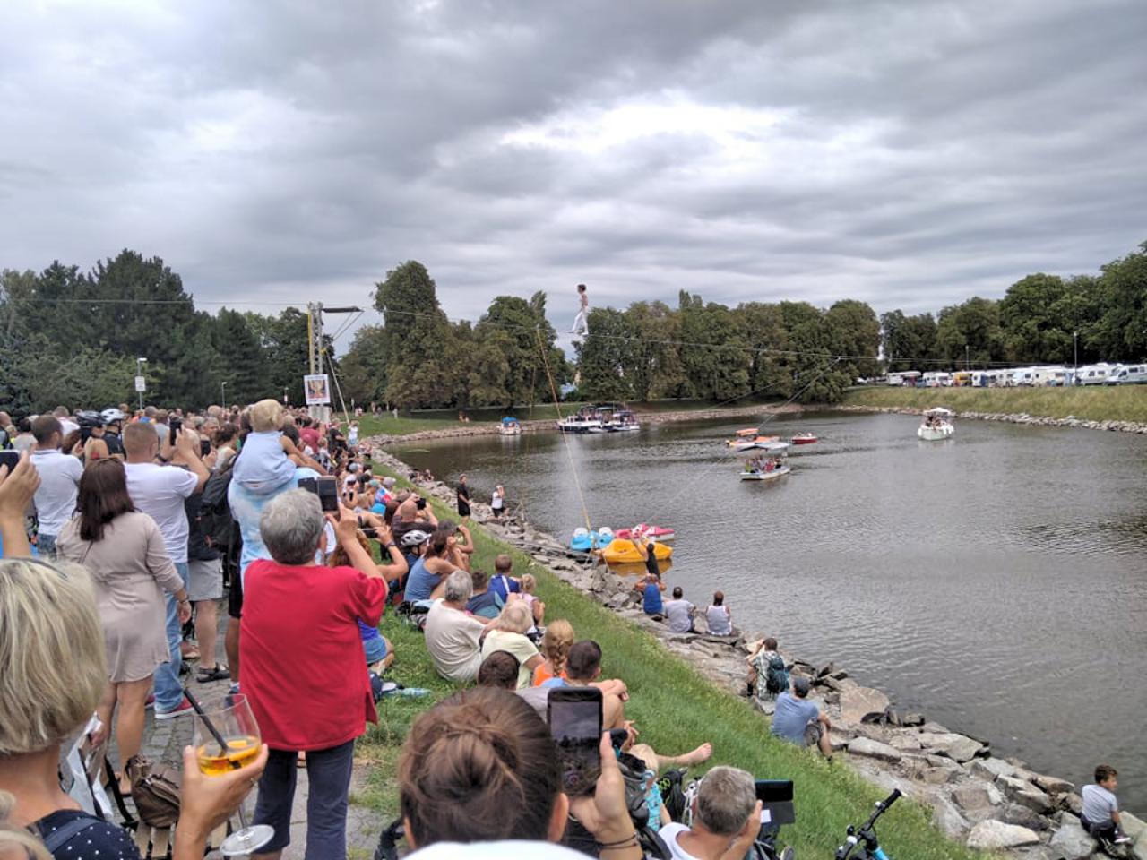 Lodě na Labe patří stejně jako máslo na chleba. Přes vodu po laně přešla světově proslulá artistka Sarah Tarantini Kaiser. Tleskal jí dav lidí