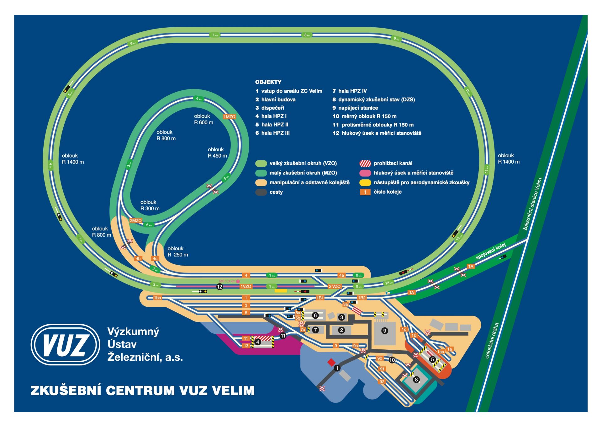 Výzkumný Ústav Železniční je významnou evropskou společností v železničním zkušebnictví a certifikaci. Zabývá se poskytováním odborných služeb a komplexních řešení v oblasti posuzování, certifikace a zkušebnictví železničních vozidel, železničních systémů a drážní dopravy. Klienty jsou výrobci kolejových vozidel a komponentů pro železniční systémy a drážní dopravu, vlastníci železniční infrastruktury, provozovatelé dráhy i drážní dopravy, státní orgány a instituce, a to jak v tuzemsku, tak v zahraničí. Hlavní částí zkušebního centra jsou dva zkušební okruhy 13 a 4 km dlouhé a rozsáhlé manipulační kolejiště. Je možné dosáhnout rychlosti až 230 kilometrů za hodinu. Součástí jsou i haly pro přípravu zkoušek.
