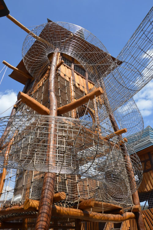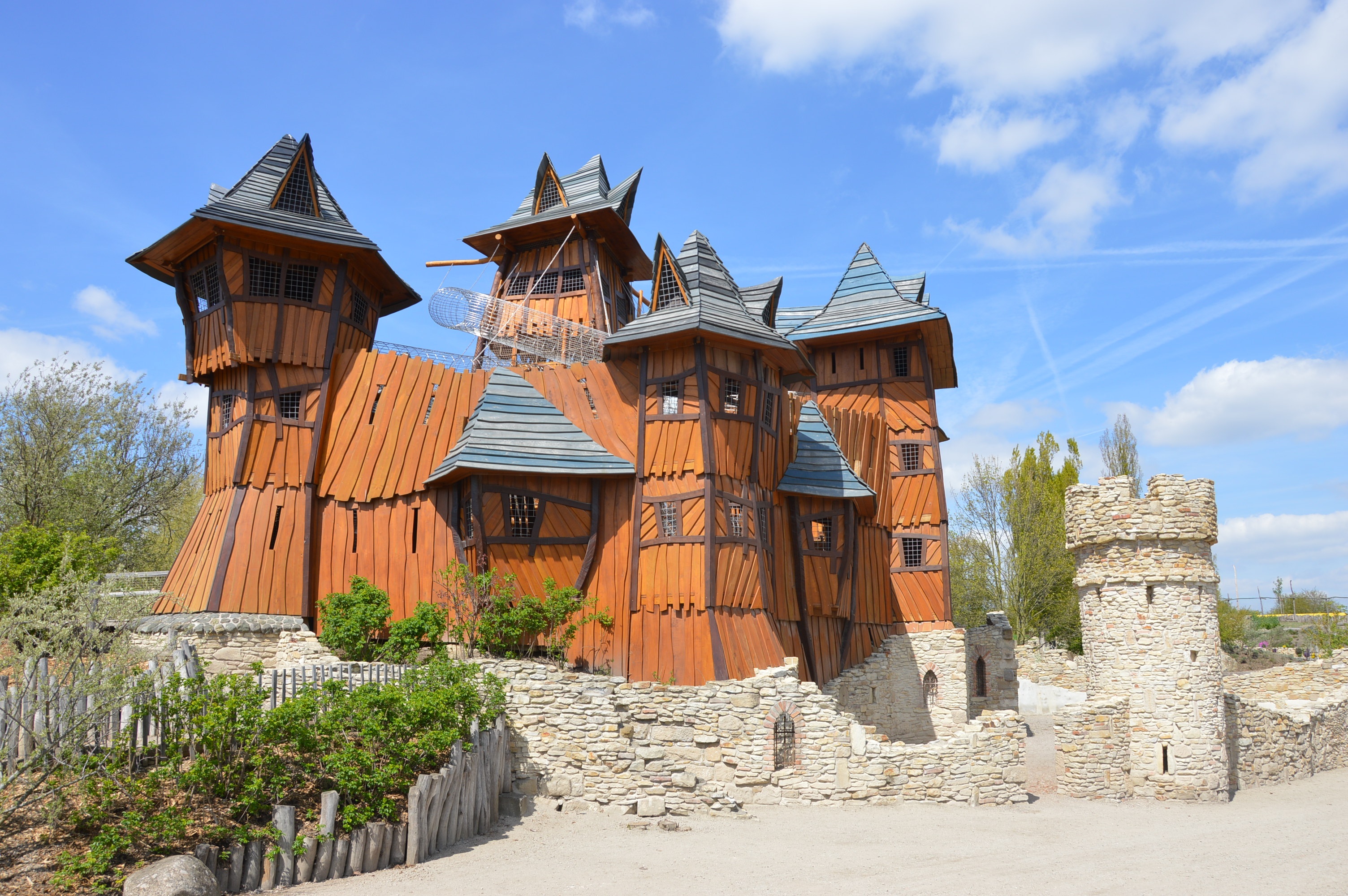 Dominantou celého parku je dřevěný hrad, přesněji řečeno hradní komplex osmi věží plných průlezů, visutých mostků, skluzavek a rozhleden, kde děti mezi jednotlivými prvky překonávají až desetimetrové výškové rozdíly. Hradu nechybí ani opevnění a systém podzemních chodeb, které lze rovněž prozkoumat.
