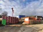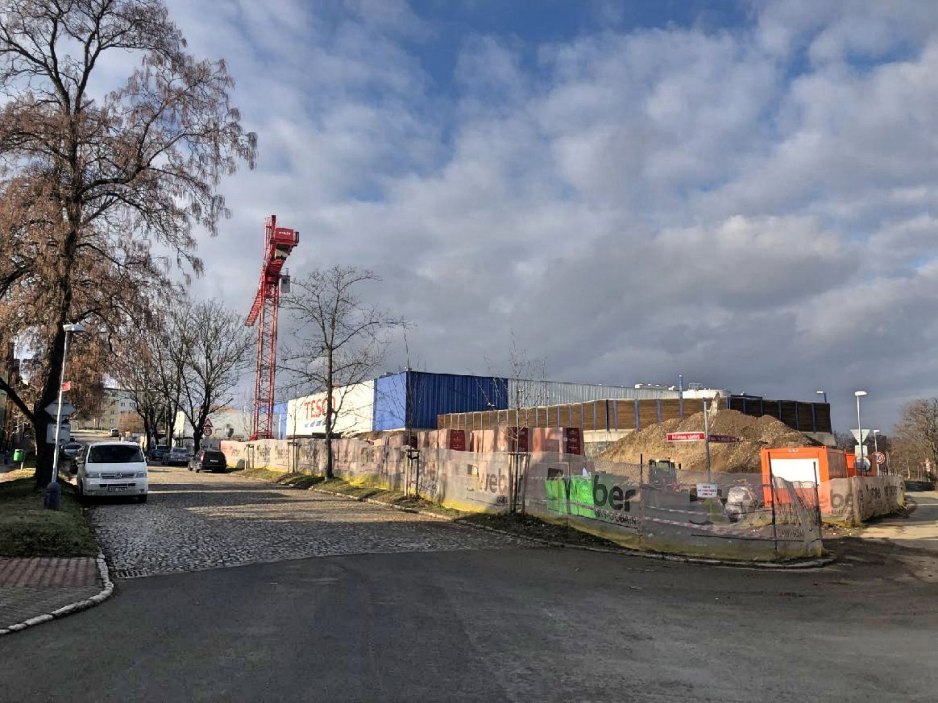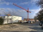 Kolemjdoucí se pozastaví u obrovitého jeřábu červené barvy a množství stavebního materiálu. Před zahájením stavby bylo ovšem nutné vyhloubit obrovské množství zeminy, která se navršila na blízkém labském břehu v ulici Na Pustině v horu výšky dvoupatrového domu.