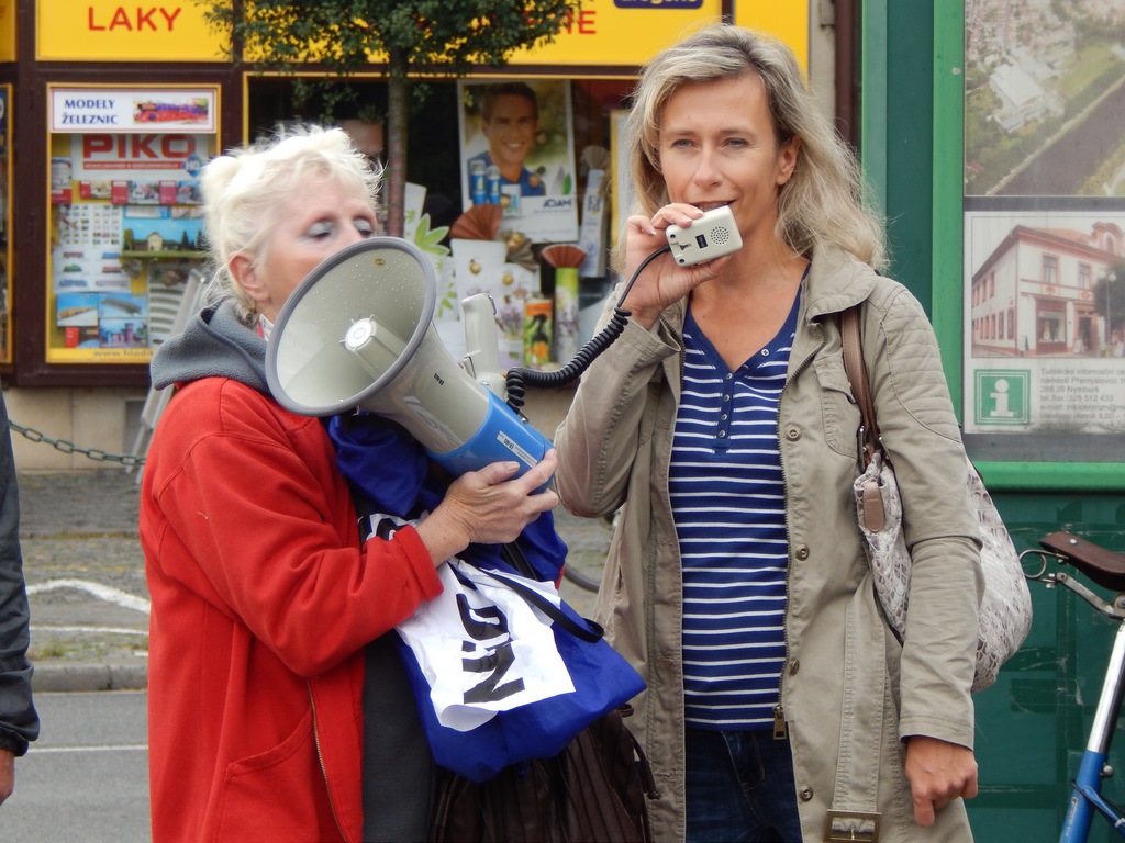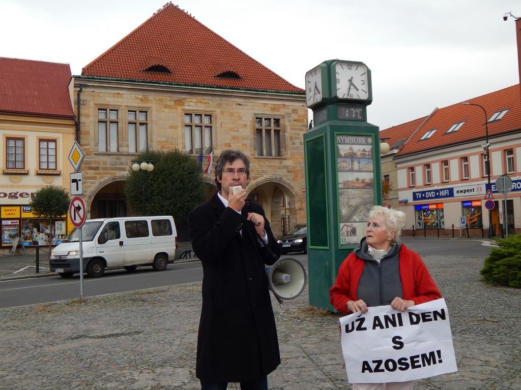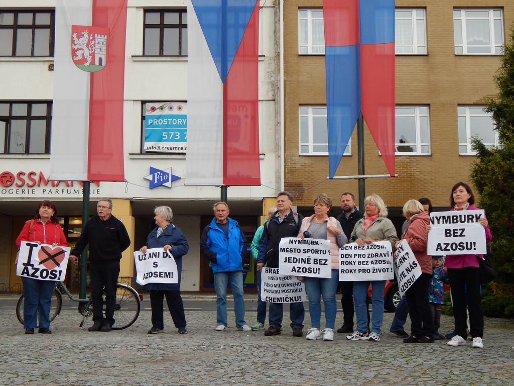 Štěrbová seznámila demonstranty se svojí žádostí, kterou poslala prostřednictvím AK Frank Bold. Jde o Žádost č. 2 o vydání předběžného opatřenípodle § 61 správního řádu společnosti AZOS CZ, s.r.o. zdržet se užívání stavby, která je součástí st.p.č. 2585/1 a st.p.č. 2585/3 v k. ú. Nymburk, pro účely provozu technologie povrchových úprav kovů nebo plastických hmot s použitím elektrolytických nebo chemických postupů v hlavním výrobním objektu, pomocných technických provozech a expedici ve svém areálu na citovaných pozemcích na adrese Pražská 871, Nymburk