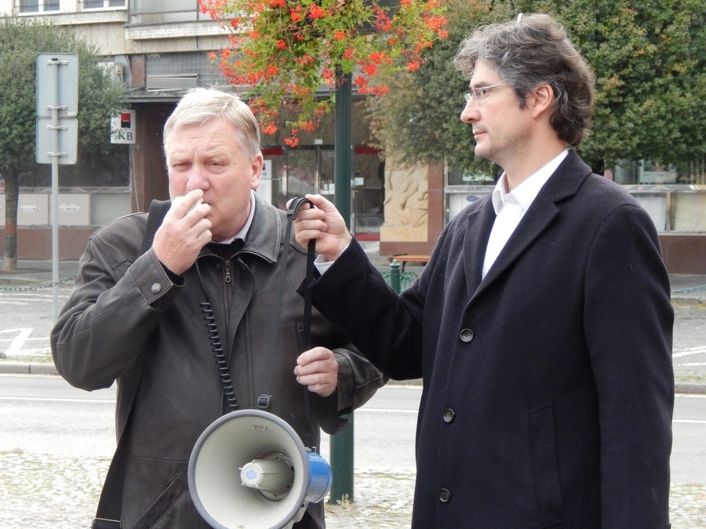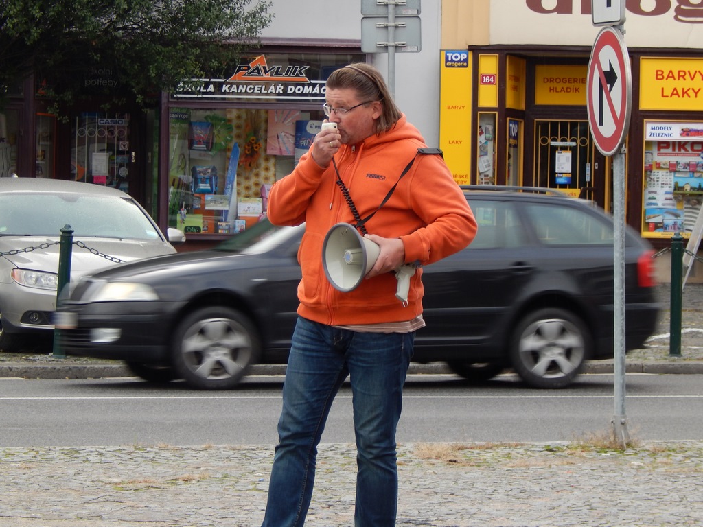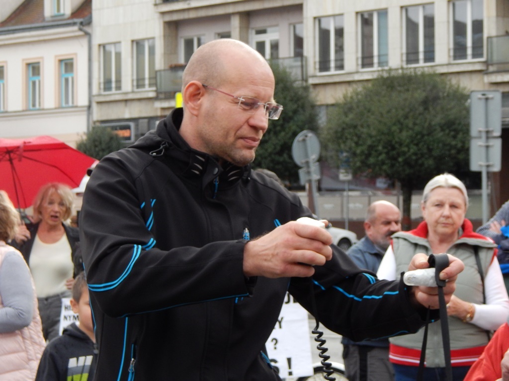 Starosta Nymburka Pavel Fojtík informuje demonstranty a o aktutálním stavu kauzy AZOS CZ.