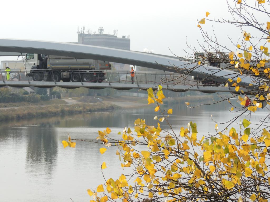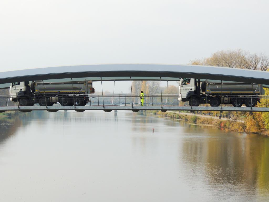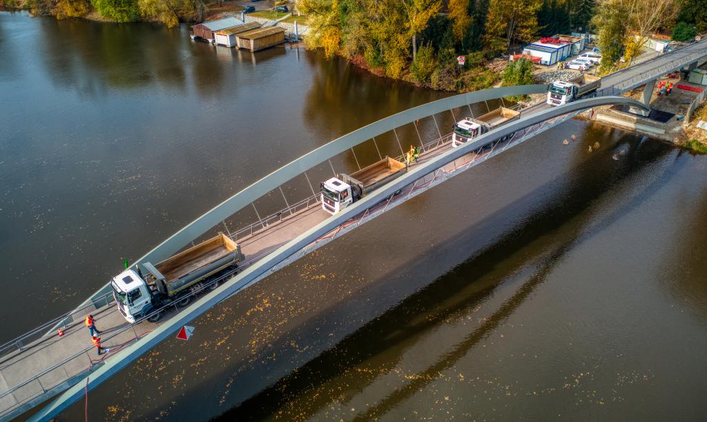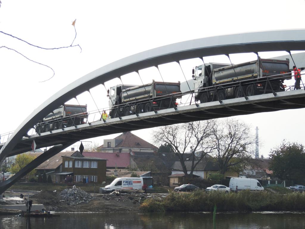 Zátěžová zkouška mostní konstrukce proběhla v pondělí 1. listopadu. Během dne na lávku najížděly různé počty nákladních vozů ve vlnách. I když se dnes nejedná o ruskou vojenskou techniku jako v roce 1985, na fotografiích dnešních a z archivu můžete obě akce porovnat. Tenkrát lávku začali stavět v roce 1983 a slavnostně ji otevřeli v srpnu 1985.