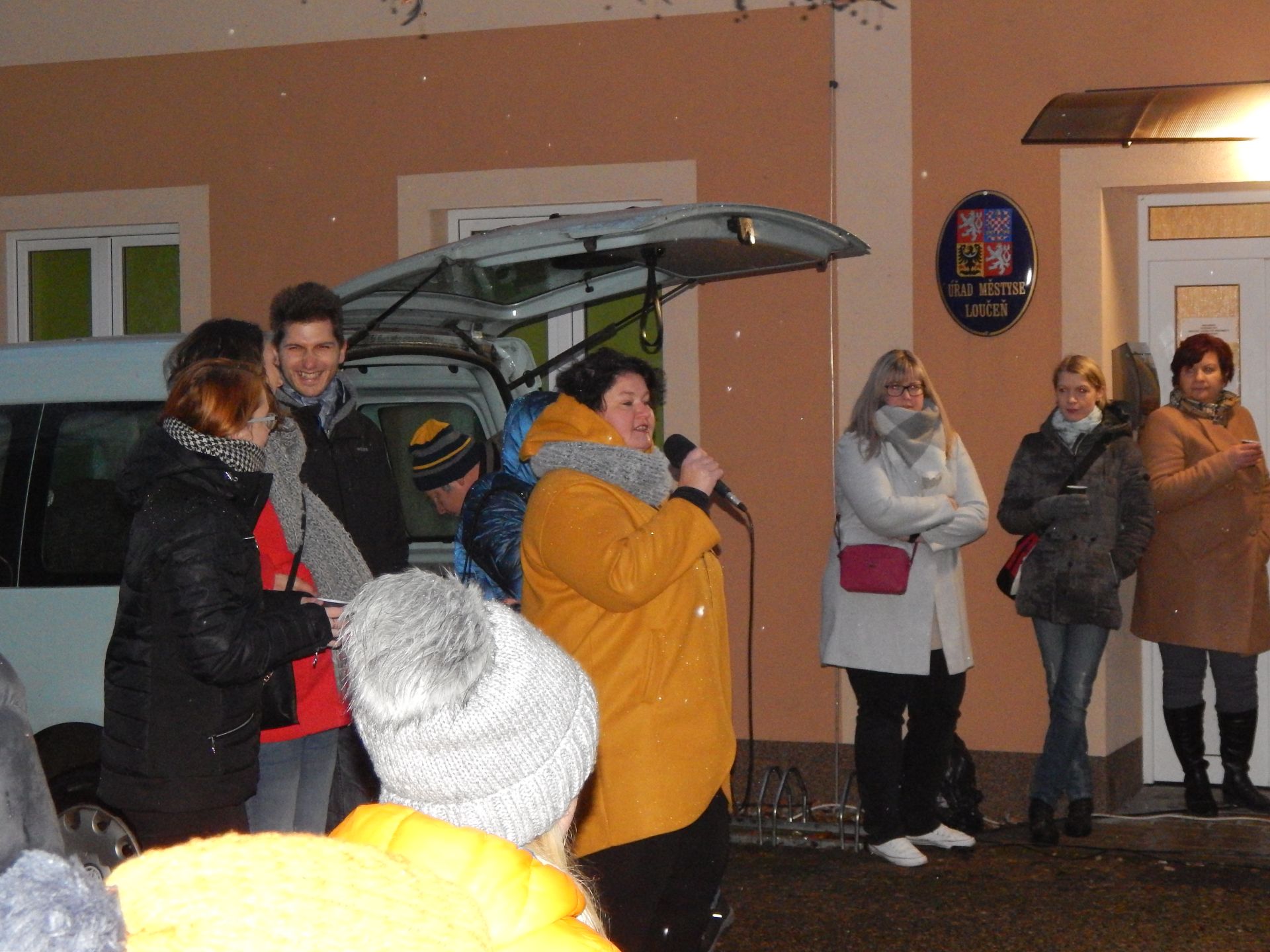 Před samotným rozsvícením třicetimetrové živé jedle, která roste před obecním úřadem a podle starostky Peterkové je to nejvyšší živý Vánoční strom v širokém okolí, zazpívali divadelníci ze souboru Amadis, který má v loučeňském kulturním domě domovskou scénu. Známé vánoční písně citlivě přednesli Petra Štefíková, Jana Rybářová, Nikola Suchová a Gottovu Kdepak ty ptáčku hnízdo máš naprosto bravurně vystřihl Petr Johaník