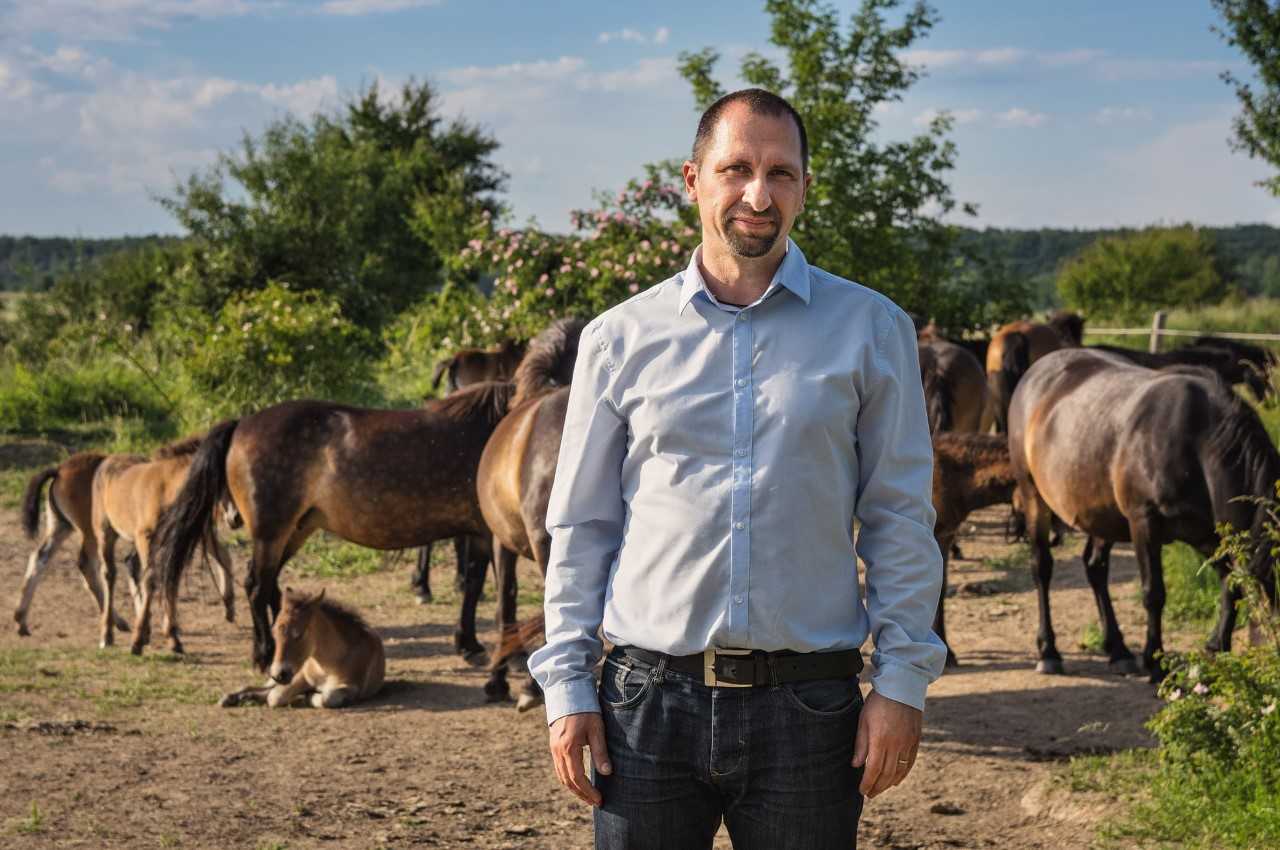 FOTO: Michal Köpping (Ředitel ochranářské organizace Dalibor Dostál se stádem divokých koní).