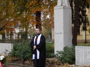 “Běda zemi, která zapomíná na své hrdiny a ještě větší běda zemi, která nové hrdiny potřebuje,” pronesl Petr Plaňanský, pastýř Křesťanského společenství a přidal modlitbu za všechny padlé, hrdiny obou světových válek.