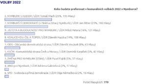 V posledním týdnu jsme se hodně vyptávali náhodných obyvatel Nymburka, abychom co nejvíce eliminovali syndrom “sociální bubliny,” kde jsou v našem nejbližším okolí většinou lidé podobného smýšlení. Na webu Rádia Patriot jsme před čtrnácti dny otevřeli anketu, která měla za cíl podchytit náladu voličů v Nymburce, Poděbradech a do senátního obvodu Jičín. Pokud se podíváme na výsledky za Nymburk, nejvíce sympatií má současný starosta Tomáš Mach a lídr uskupení Nymburk s klidem. Jako druzí skončili Nymburští demokraté, nyní opoziční síla v čele s Janem Ritterem. Ovšem vyptáváním mezi náhodnými lidmi jsme zjistili, že Nymburští demokraté mohou mít větší potenciál, než ukázala naše anketa. Nutno přiznat, že v některých dnech Nymburští demokraté v anketě vedli. Machův Nymburk s klidem naopak většinou nezklamal sympatizanty z voleb před čtyřmi lety a můžeme předpokládát, že ti, kteří tehdy vhodili do urny volební list s křížkem u hnutí Nymburk s klidem, tak udělají opět.
