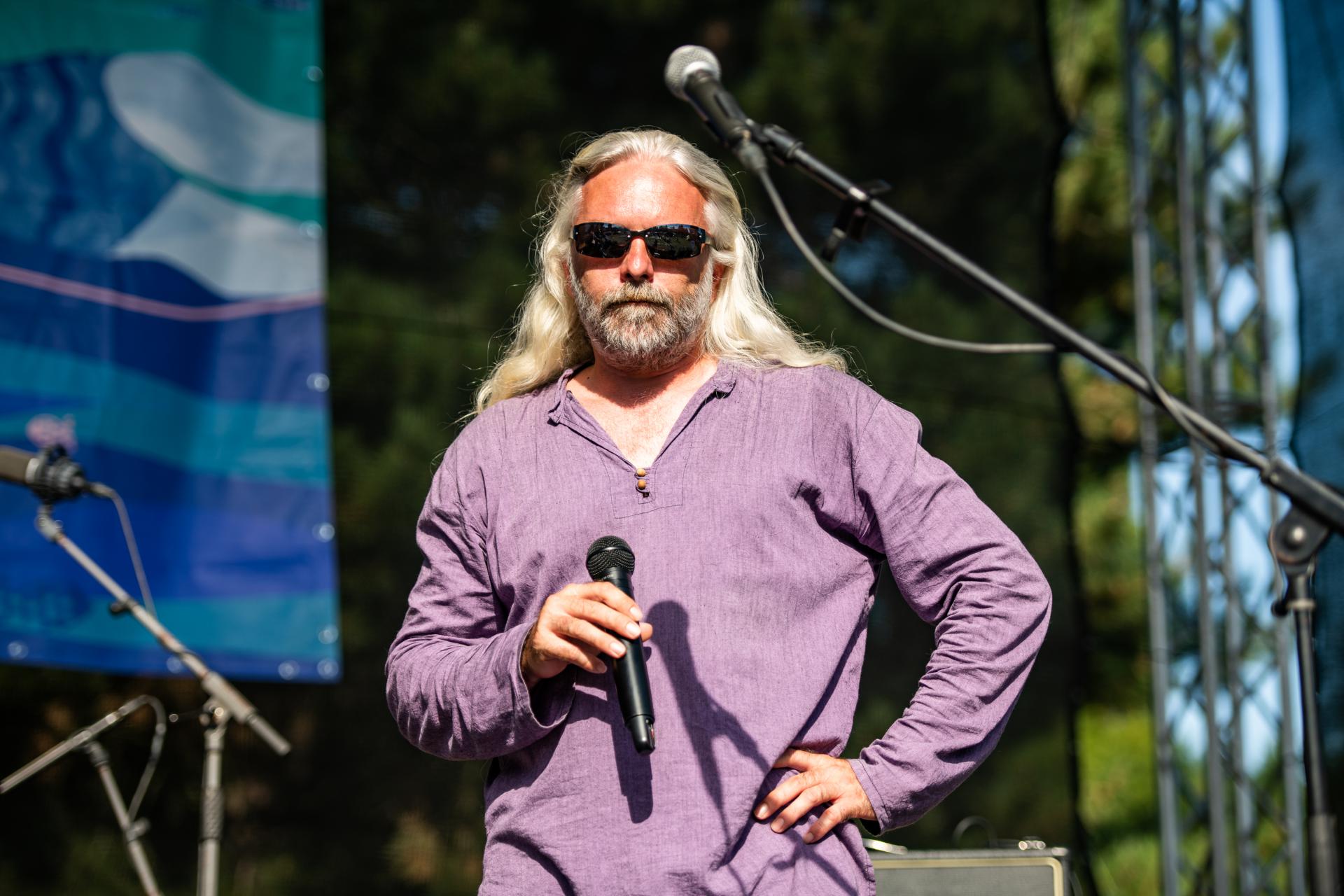 Jan Kalina, lídr a zpěvák skupiny Sto zvířat s čápem – Foto: David Růžička, NKC