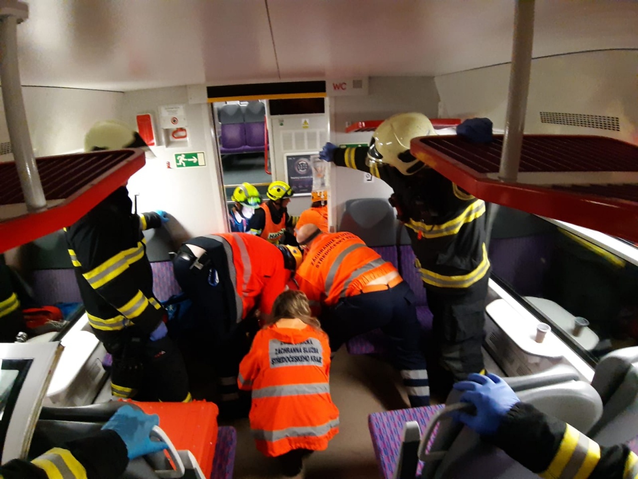 Pro lepší koordinaci záchranných prací byl vytvořen štáb velitele zásahu, jehož členy byli i zástupci drážních hasičů, Policie ČR a zdravotnické záchranné služby. Hasiči společně se zdravotníky začali s ošetřováním zraněných lidí, které postupně vynášeli na stanoviště, kde byli ranění tříděni metodou START. Dva těžce zranění pacienti byli transportováni do nemocnic v Praze a Českých Budějovicích letecky přivolanými vrtulníky. Osm středně těžce a dvacet pět lehce zraněných osob rozvezly posádky zdravotnické záchranné služby sanitkami do nemocnic v Kolíně, Nymburce a v Praze.
