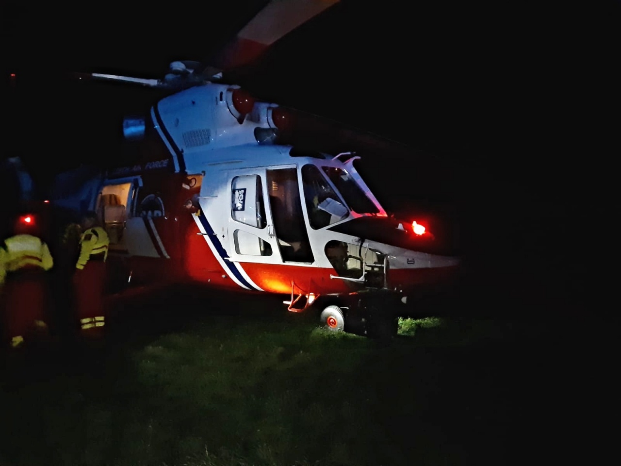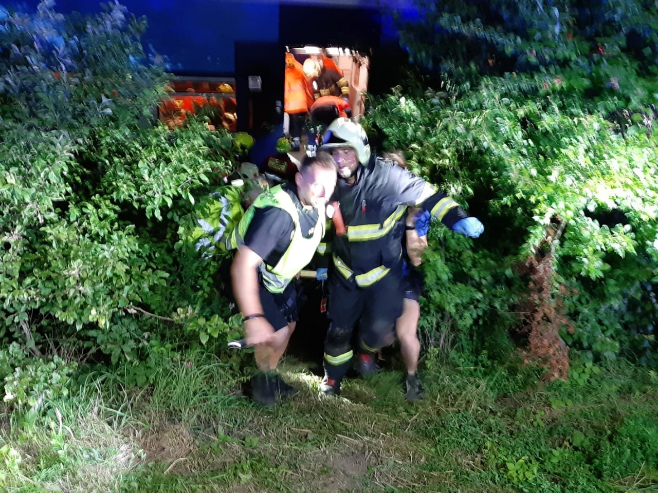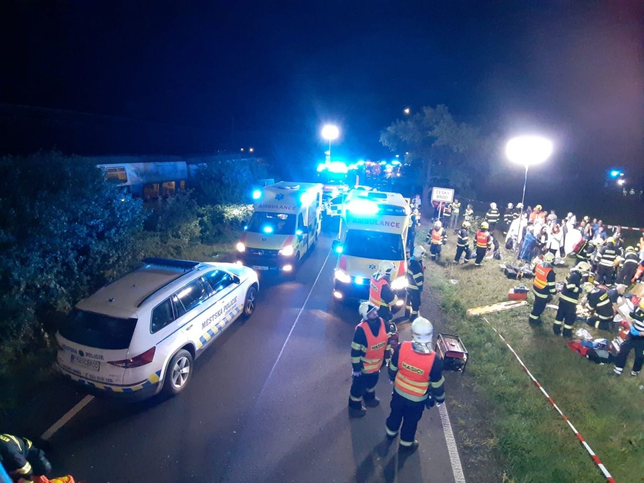 Část hasičů a policistů pročesávala okolí nehody pro případ, kdyby někdo z cestujících v šoku opustil vlak a zůstal například ležet v poli se zraněním. V pátrání pomáhal i vrtulník s termovizí. Kvůli velké tmě byl celý prostor kolem nehody a ošetřování zraněných nasvícen osvětlovacími balony a mobilními reflektory.