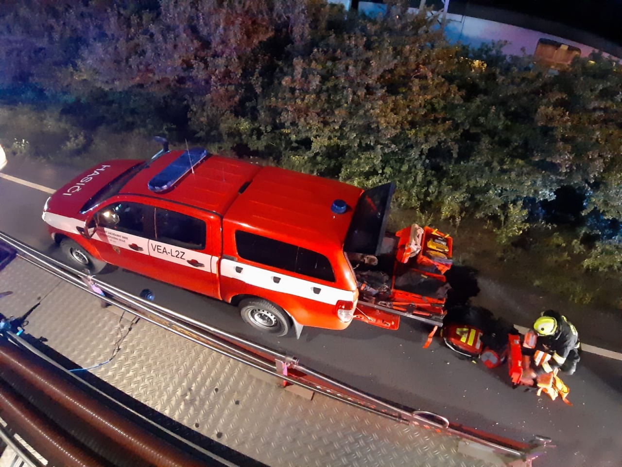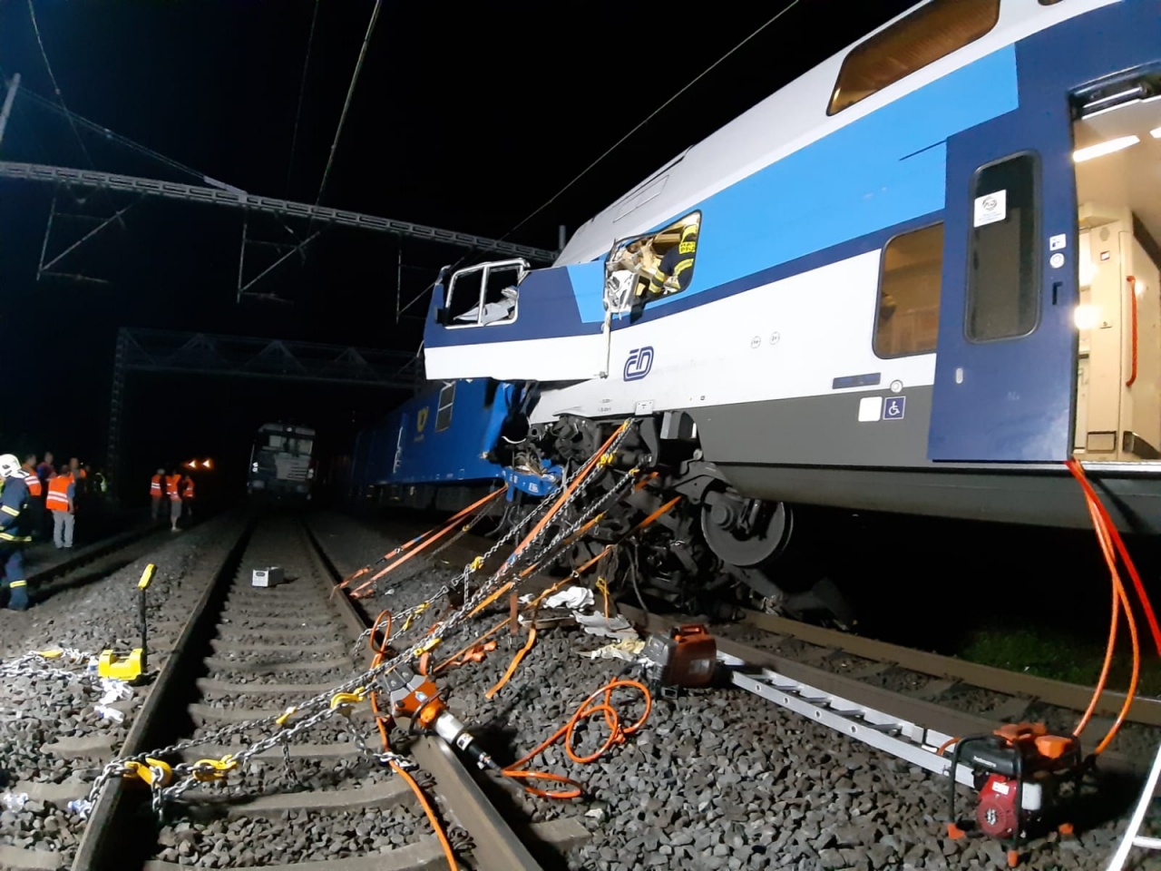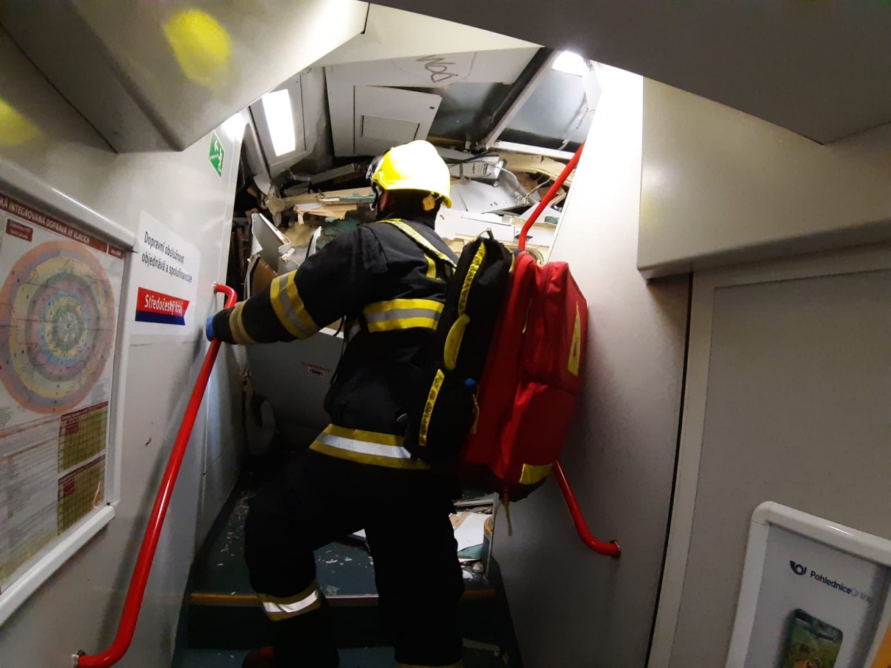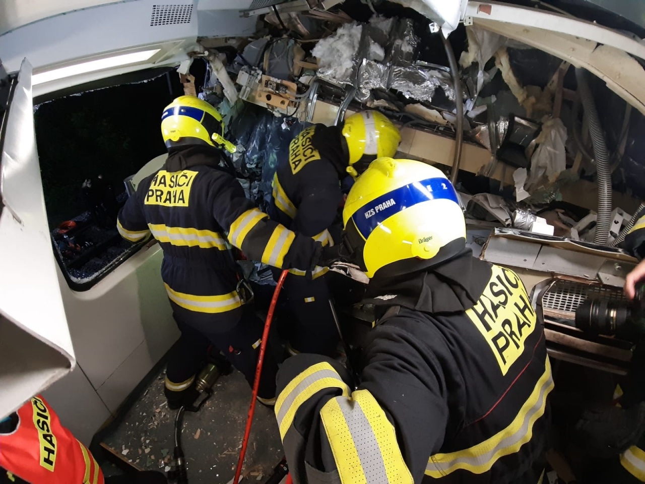 Začalo také vyhledávání pohřešovaného strojvůdce osobního vlaku, který byl nakonec nalezen bez známek života ve zdemolované kabině. Při vyprošťování těla spolupracovali středočeští hasiči s pražskými i drážními kolegy, neboť bylo nutné vykolejený vůz nejprve řádně stabilizovat a pak postupně rozřezávat.