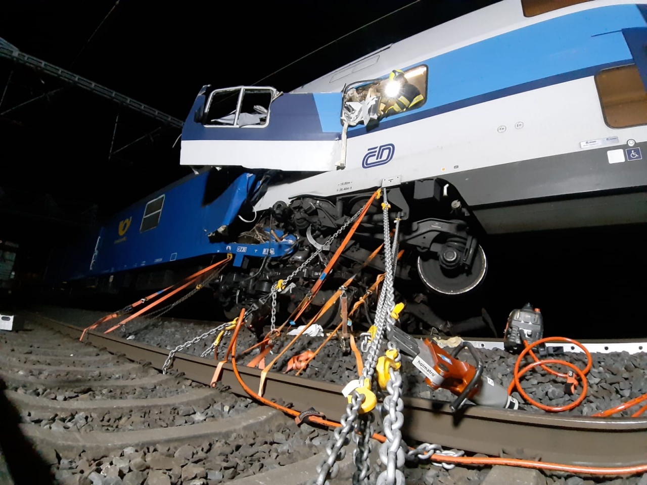 Večerní srážka vlaků u Českého Brodu má jednu oběť a desítky zraněných. Podle ministra dopravy Karla Havlíčka strojvůdce zřejmě projel na červenou