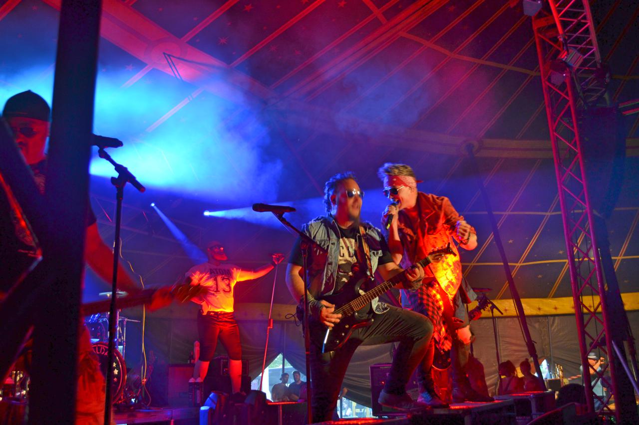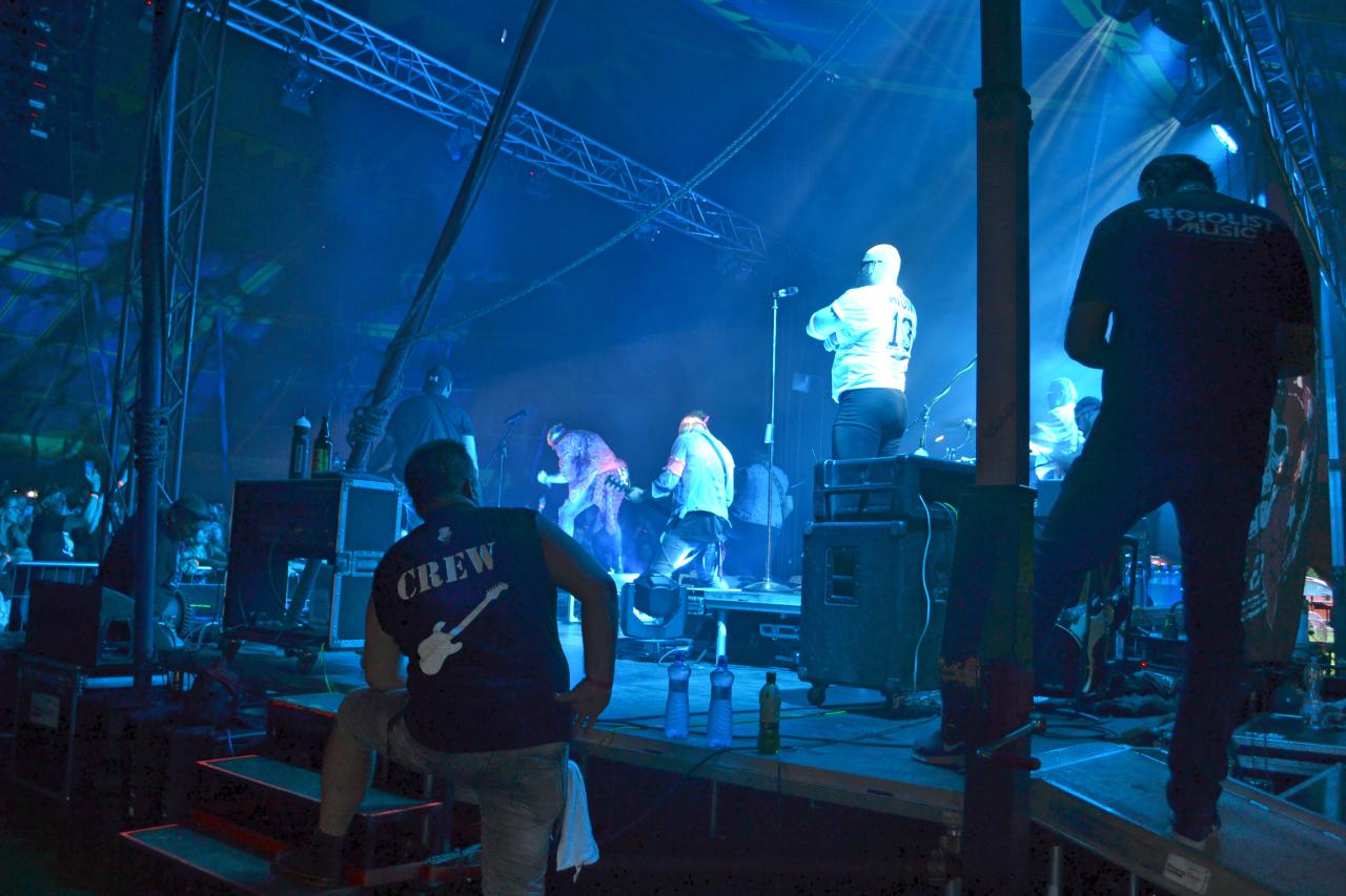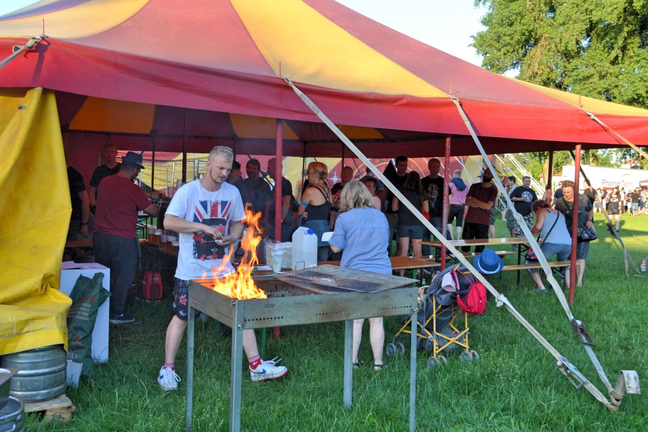 Po obou stranách stanu jsou nainstalovány tribuny, jinak je prostor volný. Venku v areálu si návštěvníci mohou dát pivo, kafe nebo párek v rohlíku. Nechybí ani cukrová vata, celé to působí pouťově. Ovšem využít hasičské hřiště ke konání koncertů, či jiných větších akcí se nabízí už léta, nikdo to zatím příliš nevyužil (kromě Dragonfestu).